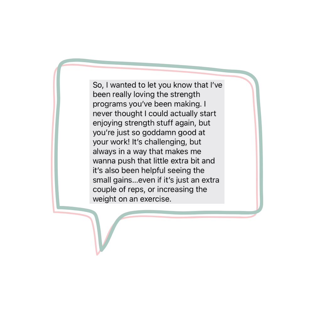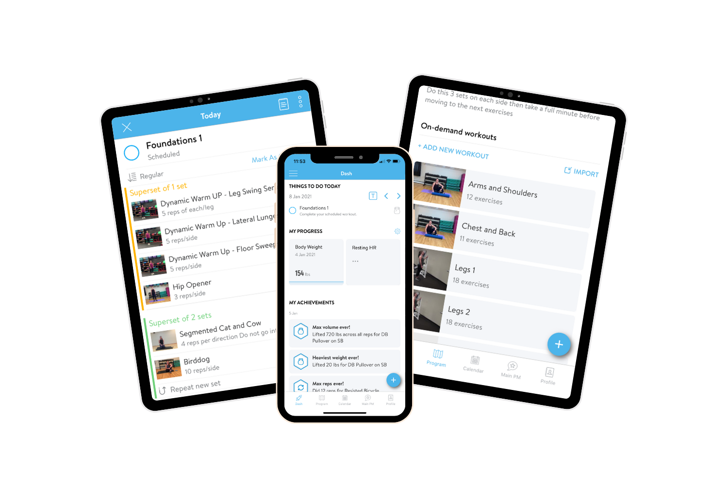 Workouts will be uploaded to your personalized app. All exercises have easy-to-follow video instruction. You can track your progress within the app - I will also see this ;)